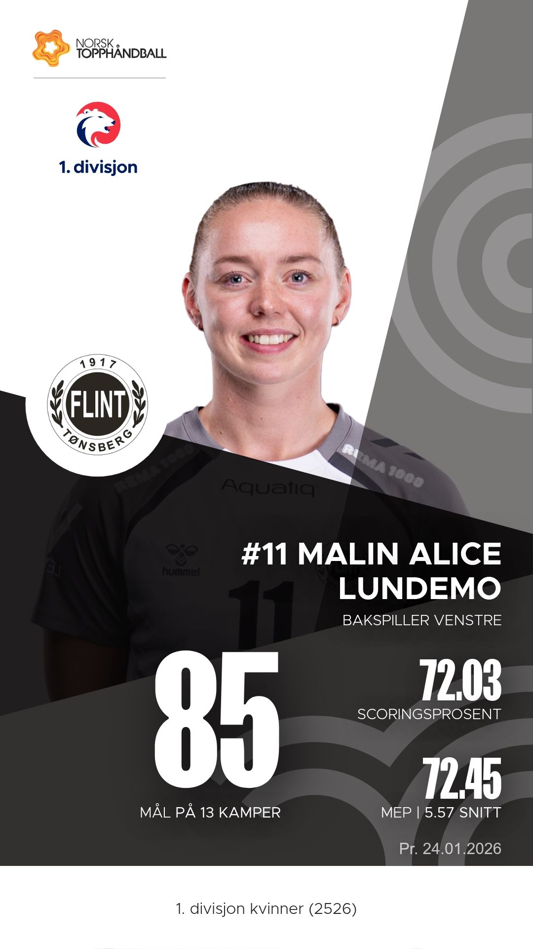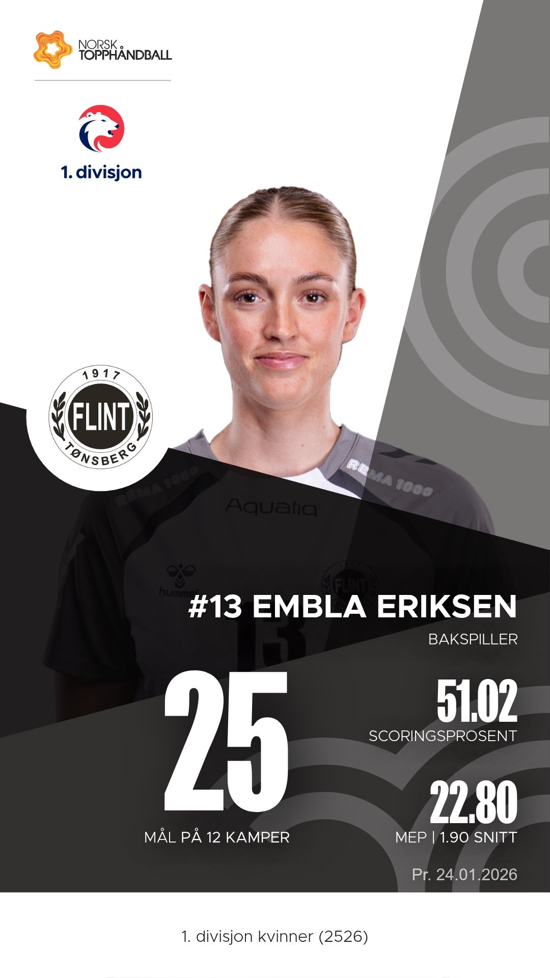 Flint Tønsberg stiller med flere nøkkelspillere i storform. Malin Alice Lundemo har vært lagets ubestridte motor i angrepsspillet. Med tosifret antall scoringer i flere kamper og et imponerende antall målgivende pasninger, styrer hun spillet med trygghet og oversikt som en ekte playmaker. På linja har Amalie Mogstad vært en bauta – sterk i duellene, presis i avslutningene og alltid på rett sted når innspillene kommer. I tillegg har Embla Eriksen vært en avgjørende bidragsyter med sin kombinasjon av skuddstyrke og spilleforståelse, og målvakt Cecilie Wick Ullitz har levert redninger som har snudd kamper i Flints favør. Sammen utgjør de en kjerne som gir laget balanse både offensivt og defensivt.